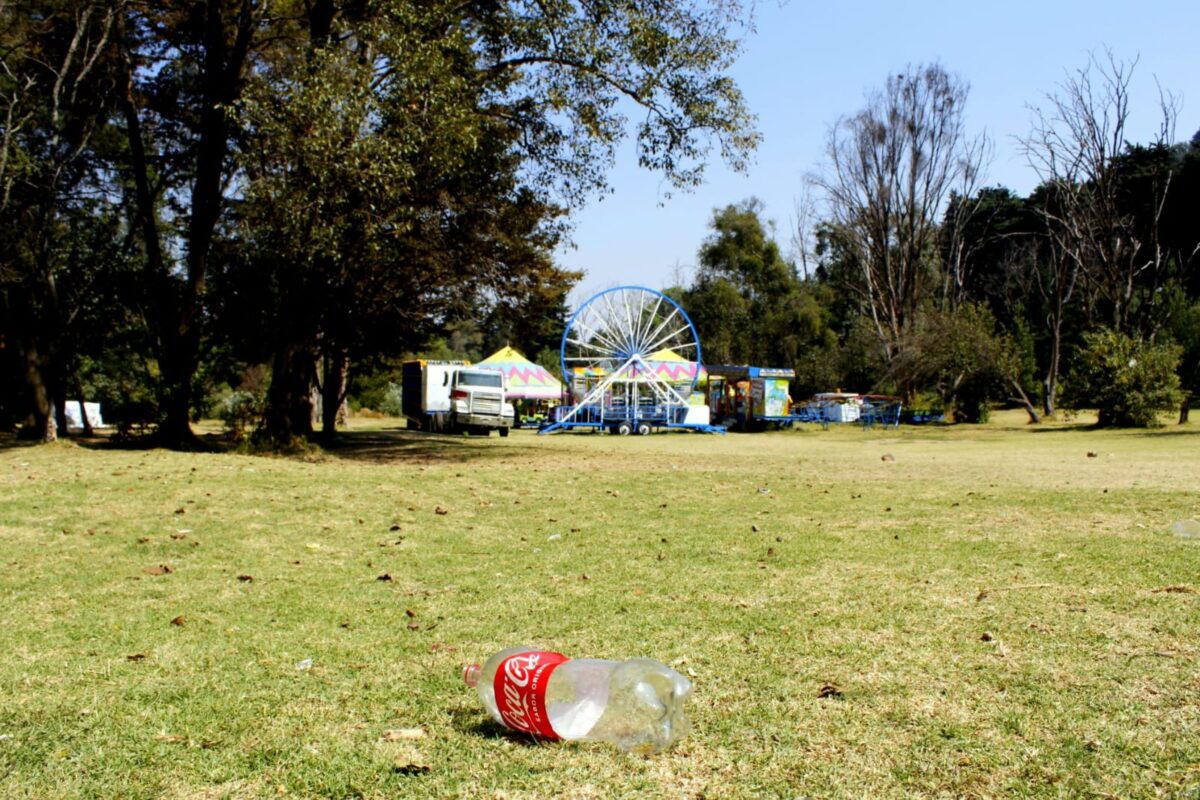 Los rastros de basura son visibles. Sobre el río que parte el bosque flotan vasos de cerveza junto con otros desechos; en el pasto y entre los árboles se repite la escena: latas tiradas, marcas de fogatas y vestigios de rituales, como listones, fruta en ofrenda, veladoras e incluso animales sacrificados.