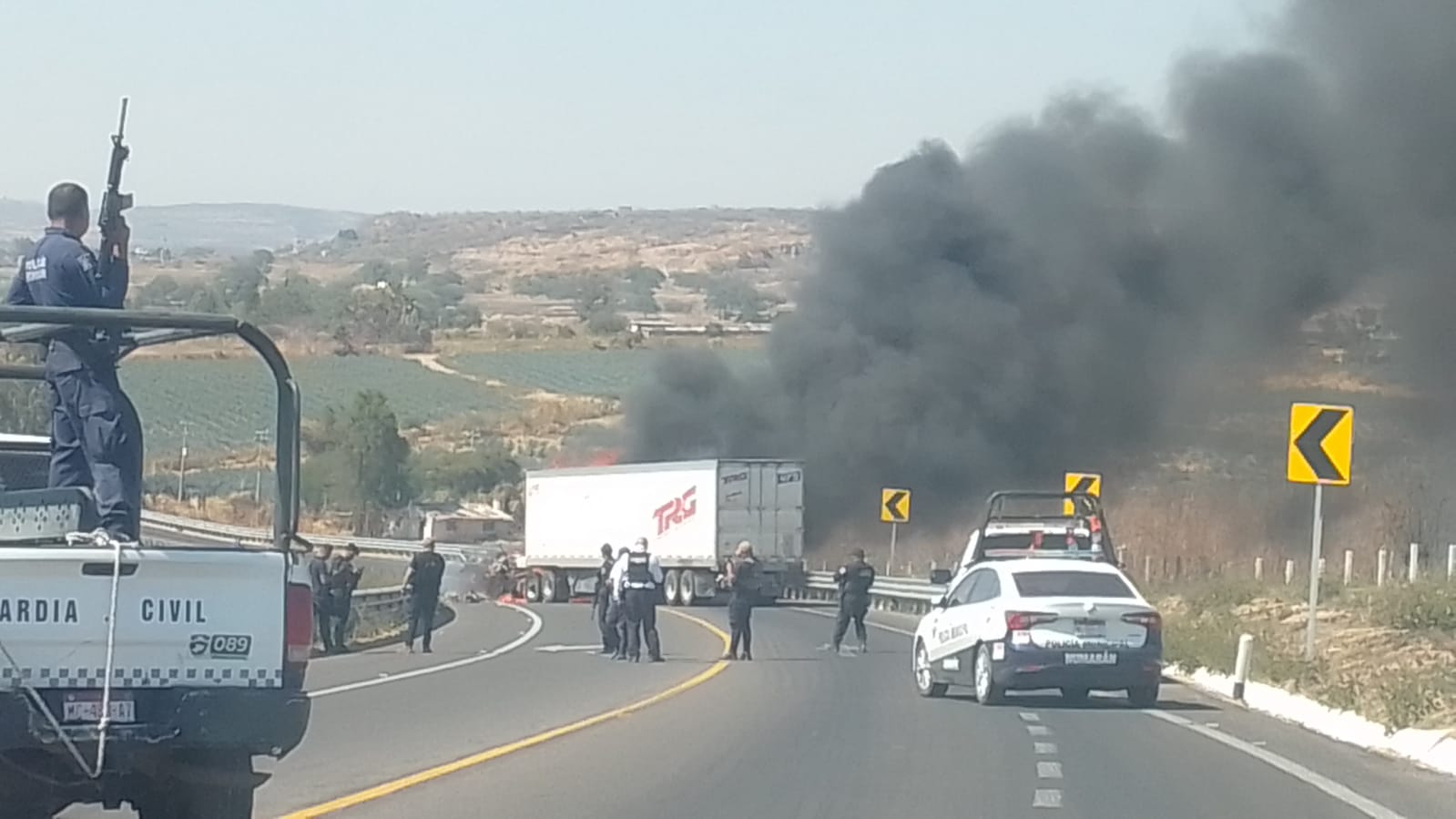 En la salida hacia la carretera libre a Encarnación de Diaz (La Chona), se registró una pipa incendiada.
