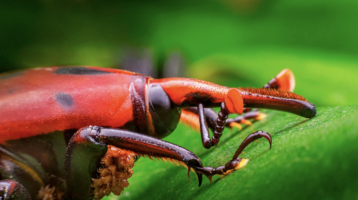 El picudo rojo es un pequeño pero temible enemigo de las palmeras, pues afecta a más de 30 géneros, tanto de especies nativas como ornamentales. Con su color rojizo o anaranjado y manchas negras, mide apenas tres a cinco centímetros de longitud. Su cuerpo duro y su característico “pico” en el aparato bucal son característicos del grupo de los curculiónidos, también conocidos como cascarudos.