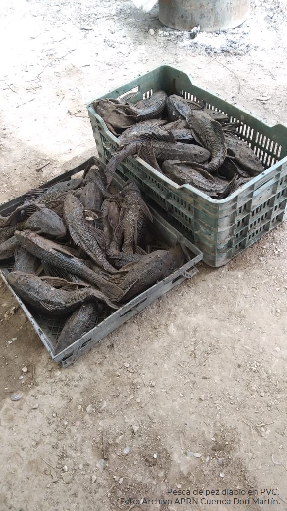 Captura del pez diablo (Pterygoplichthys pardalis) en la Presa Venustiano Carranza, en Coahuila. Foto: cortesía Archivo APRN Cuenca San Martín.