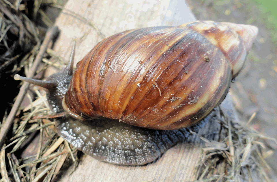 El caracol africano puede alcanzar los 28 centímetros de longitud. Foto: cortesía Grupo de Investigación Ecología Animal/UV.