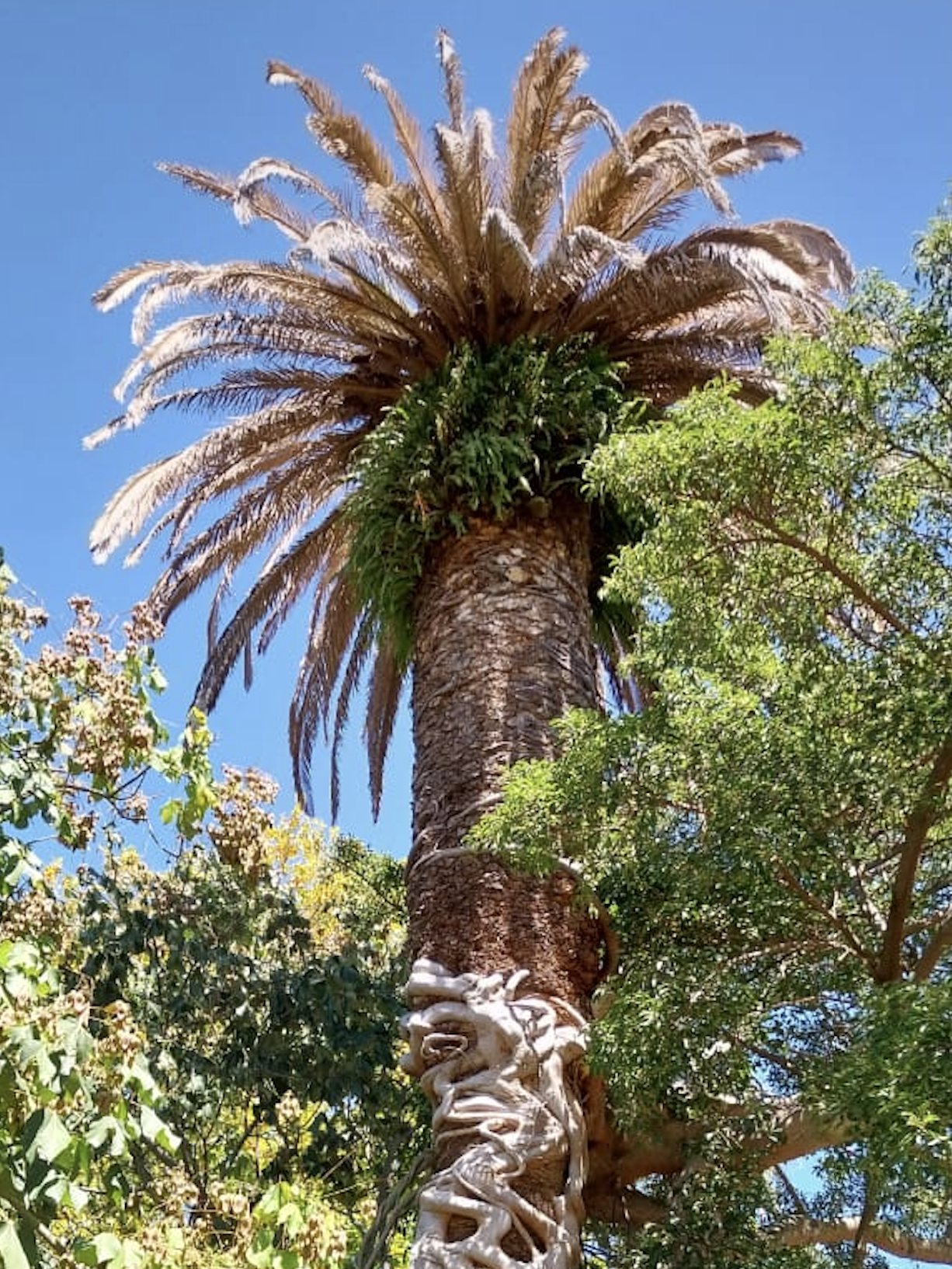Palmera Phoenix canariensis con síntomas de afectación por picudo rojo. Foto: cortesía Diego Pérez.