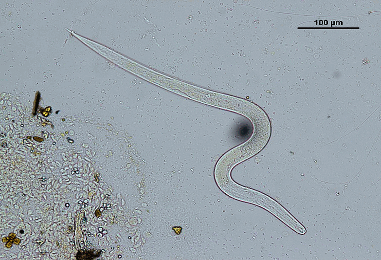 Angiostrongylus cantonensis en baba de caracol. Este parásito, que los caracoles africanos pueden portar, podría representar un riesgo para la salud humana, ya que está asociado a casos de meningitis. Foto: cortesía Grupo de Investigación en ecología Animal/UV.