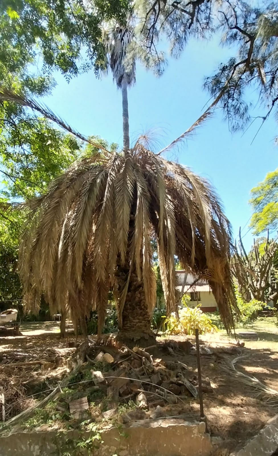En la Isla Martín García, área protegida de Argentina, los guardaparques alertaron al Senasa sobre palmeras que mostraban síntomas de afectación por el picudo rojo. Las hojas de la copa empezaban a secarse y adoptaban un aspecto parecido a un hongo o paraguas, señal evidente de la presencia de la plaga.