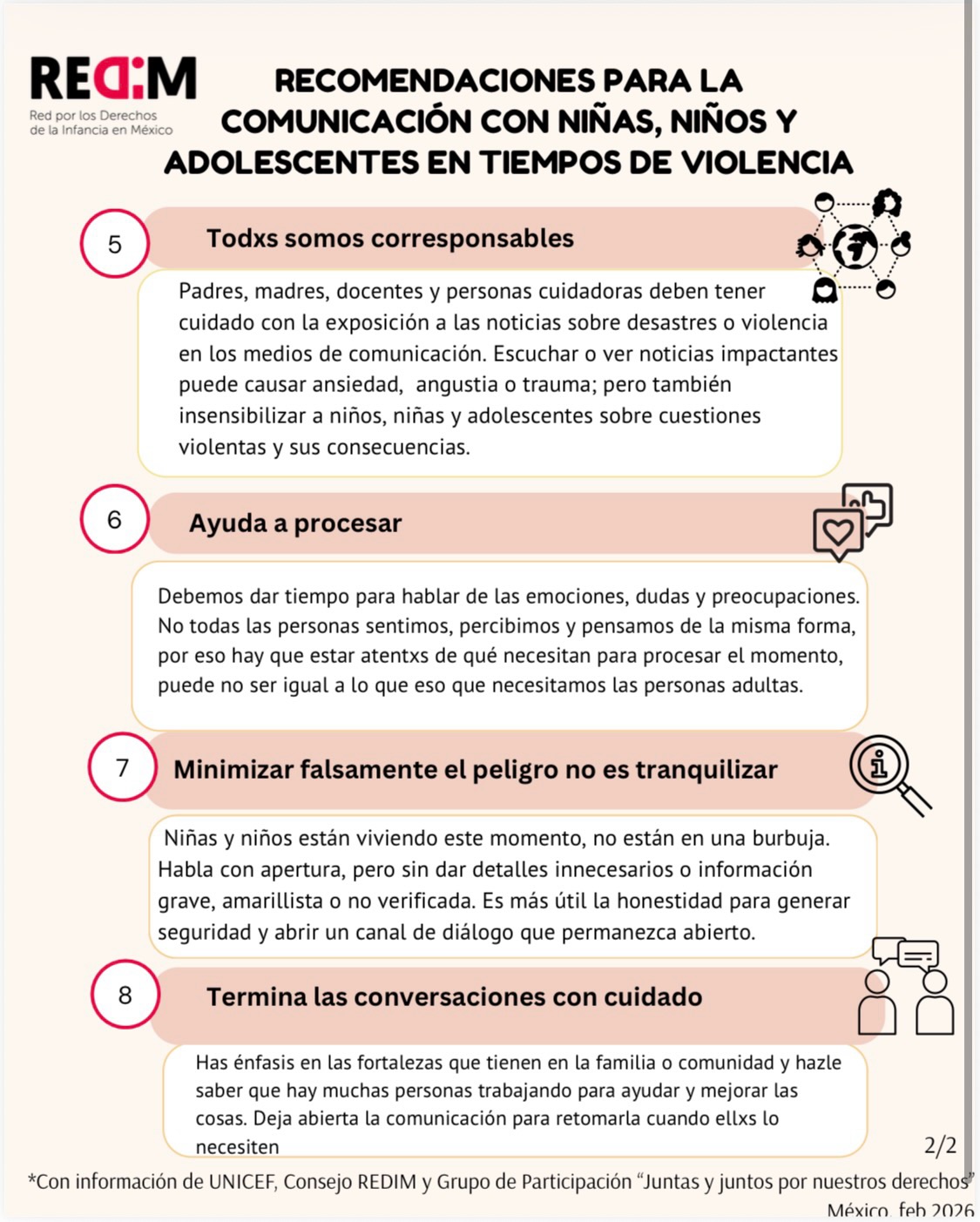 “Todas las personas adultas somos corresponsables de garantizar su derecho a la información sin exponerles a más violencia”, concluyó la REDIM.