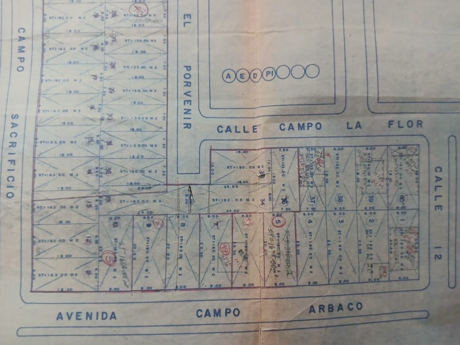 Para ampliar el panorama, se puede observar el plano de lotificación actual, donde se ve que el lote 8 se convirtió en una prolongación de la calle Campo el Porvenir, para conectar con la avenida Campo Arbaco.