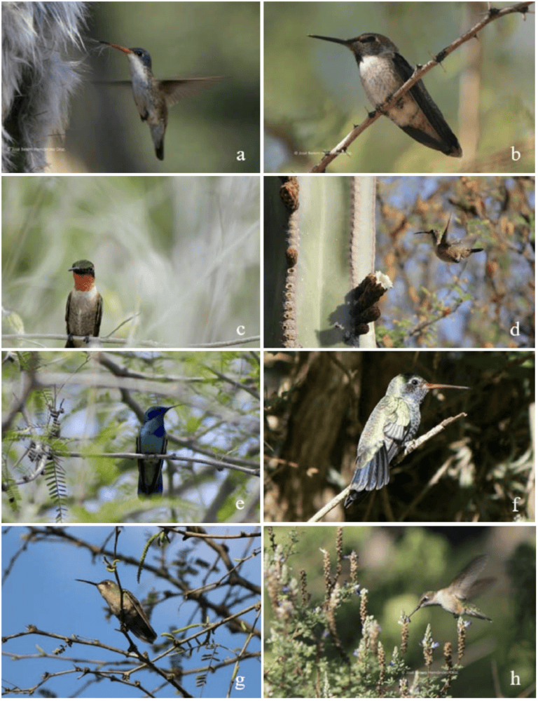 Especies de colibríes observadas en el Jardín Botánico Regional de Cadereyta. Fotos: cortesía J. Belém Hernández, Ricardo A.T. y Luis Rodríguez Castillo