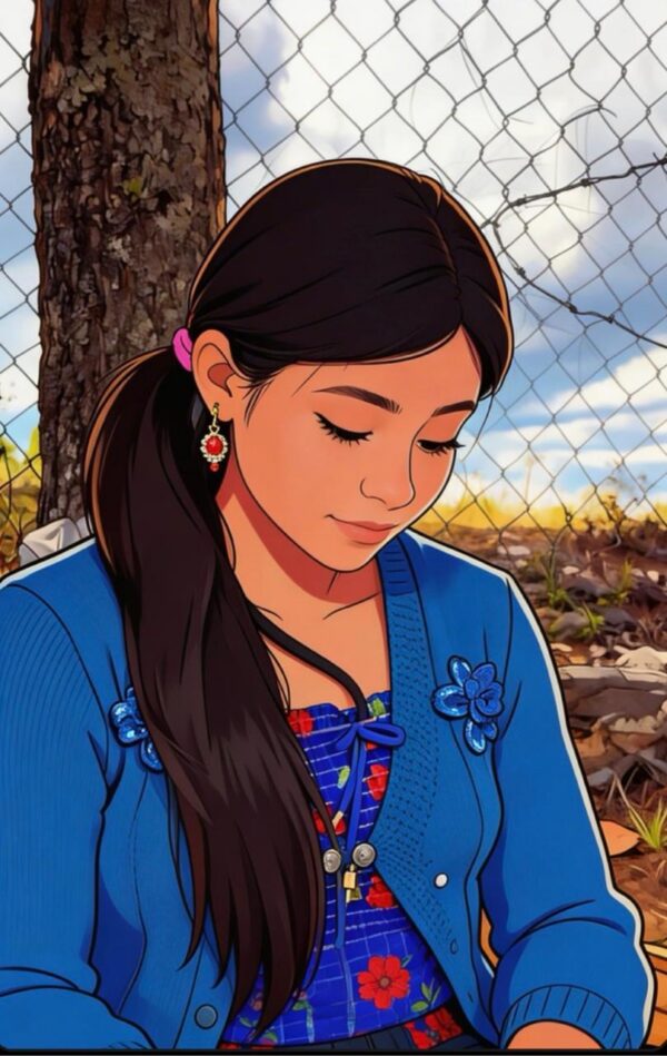 Su apariencia refleja aún rasgos claramente infantiles: rostro redondo, complexión delgada, larga cabellera negras y profundas ojeras que contrastan con la realidad que describe como “difícil y compleja”.