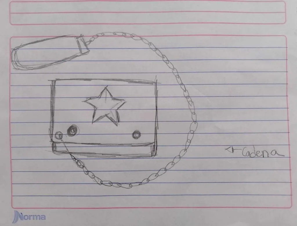 Una madre recuerda que su hijo desaparecido llevaba siempre una cartera con una estrella bordada en el centro, como esta que dibujó; siempre pregunta al forense si han hallado un objeto similar. (Cortesía)