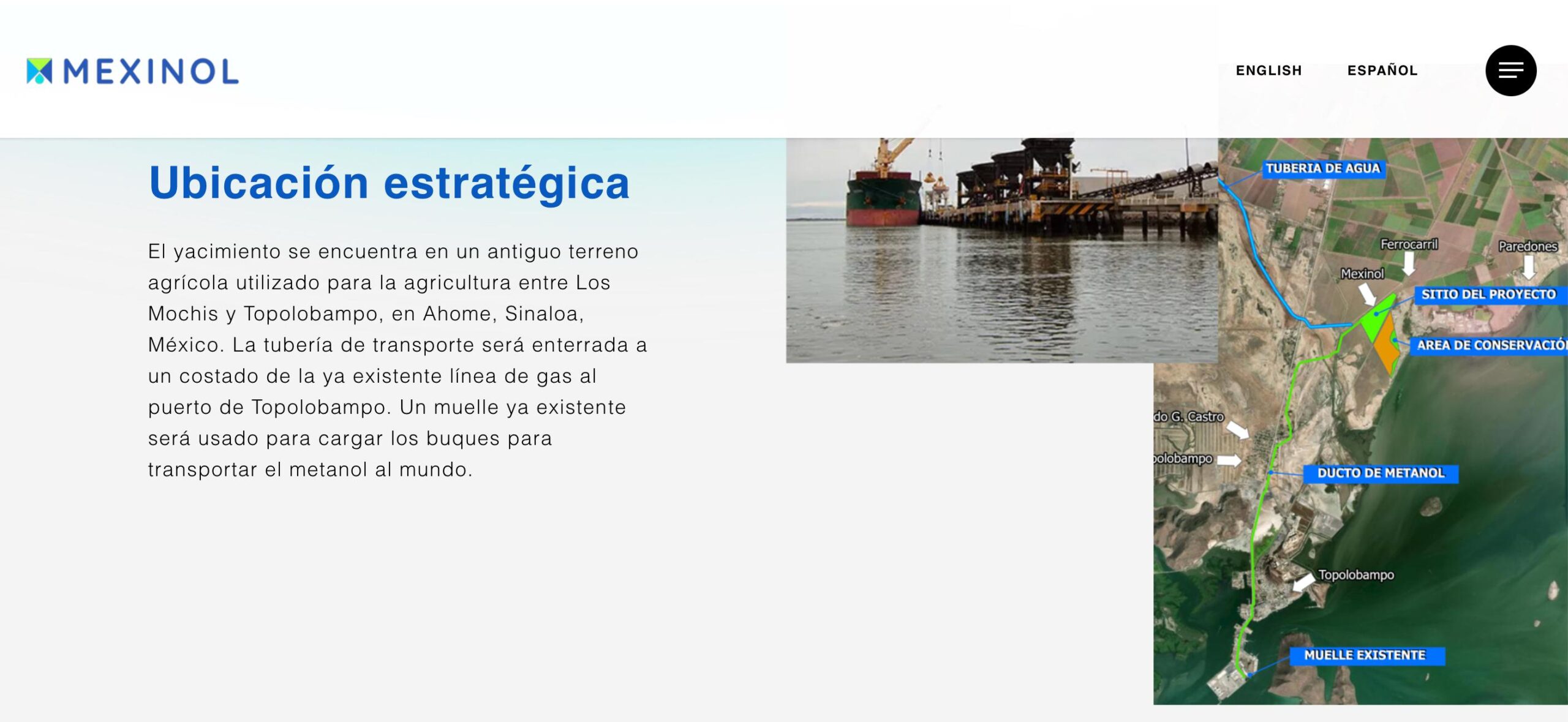 El proyecto incluye la construcción de un poliducto para cargar metanol en el puerto de Topolobampo. Tendrá una longitud de 10.3 kilómetros y se prevé sea subterráneo.