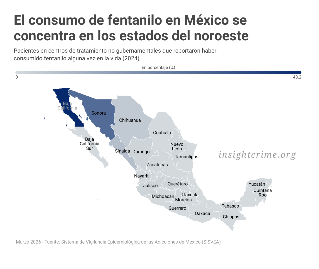A medida que las organizaciones criminales mexicanas se consolidaron como las principales proveedoras de fentanilo ilícito para Estados Unidos, comenzaron a surgir focos de consumo interno a lo largo de corredores clave de tráfico.