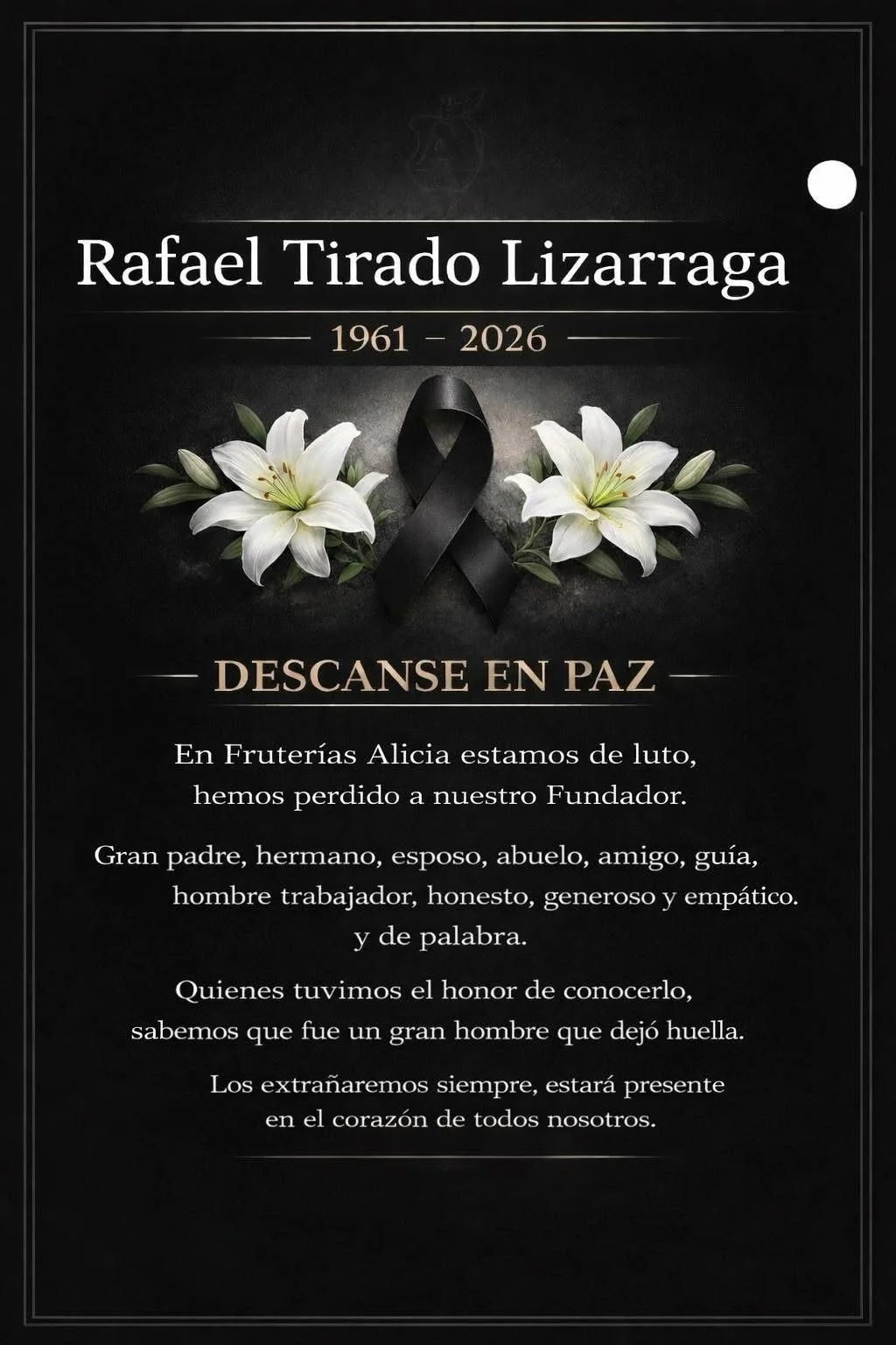 Fue hasta las primeras horas de este domingo 29 de marzo cuando se confirmó la identidad de Tirado Lizárraga. Rafael era propietario de la Frutería Alicia, ubicada en Villa Unión, en Mazatlán. Fue atráves de las paginas en redes sociales del negocio que se realizó un comunicado confirmando el fallecimiento del propietario.