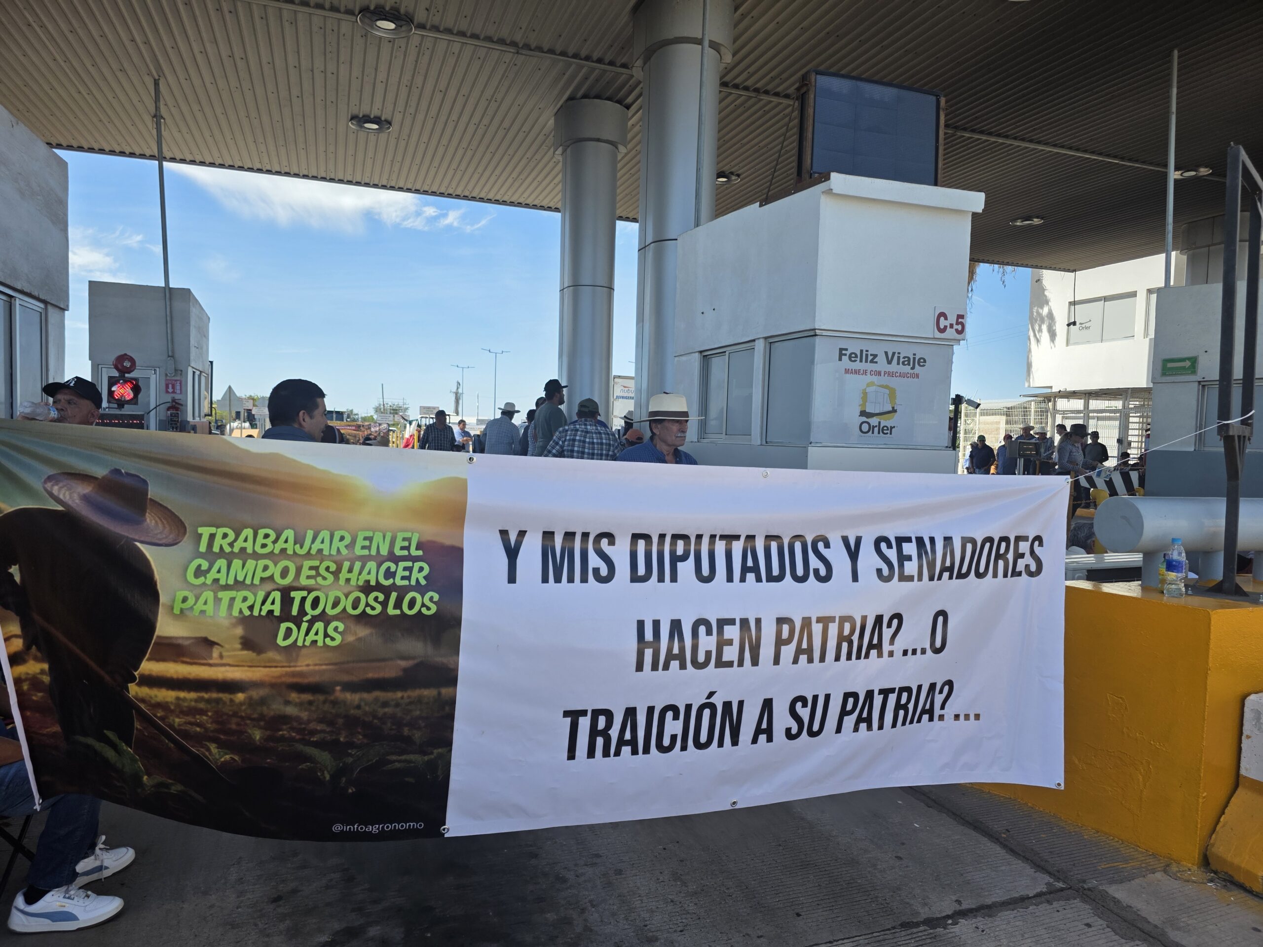 Actores políticos de oposición hicieron aparición en la protesta convocada por agricultores de Sinaloa en la caseta de El Pisal, en Navolato, este 6 de abril.