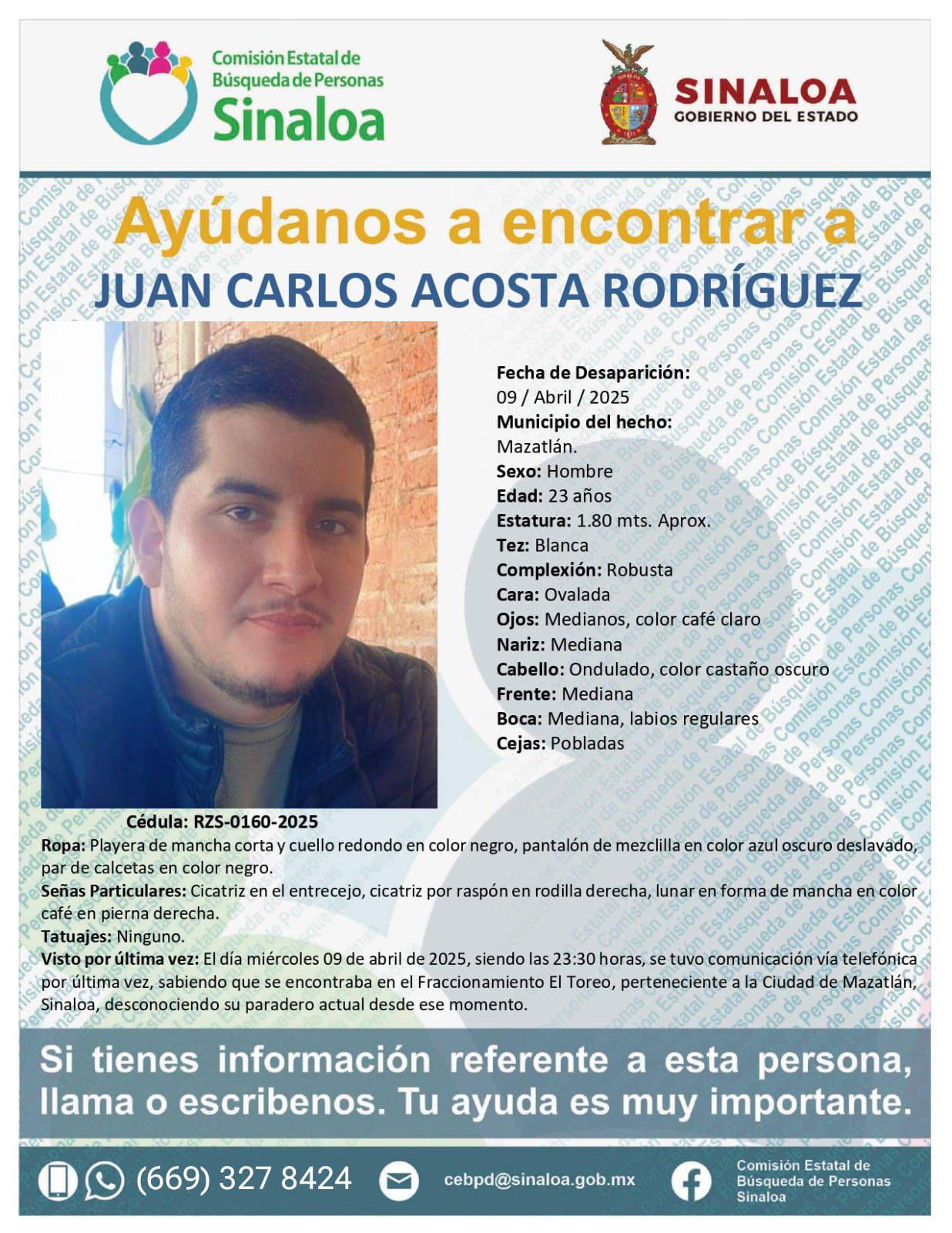 Aquí desapareció Juan Carlos Acosta Rodríguez, de 23 años edad.