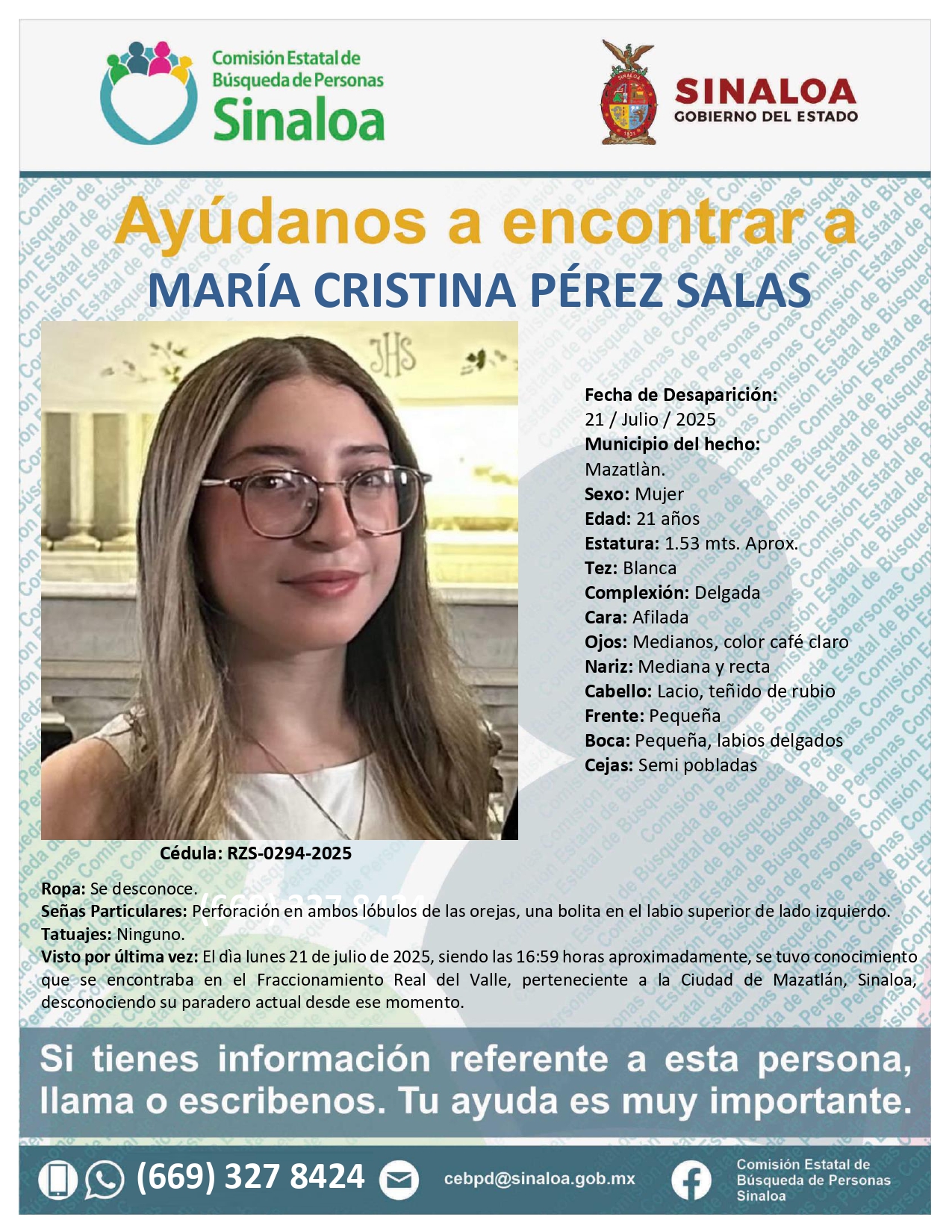 La tercera historia que llega hasta la casa de El Toreo es la de María Cristina Pérez Salas, estudiante universitaria y originaria de Mexicali. Aquí cabría su historia. El archivo periodístico dice que Cristina vino de vacaciones a Mazatlán.
