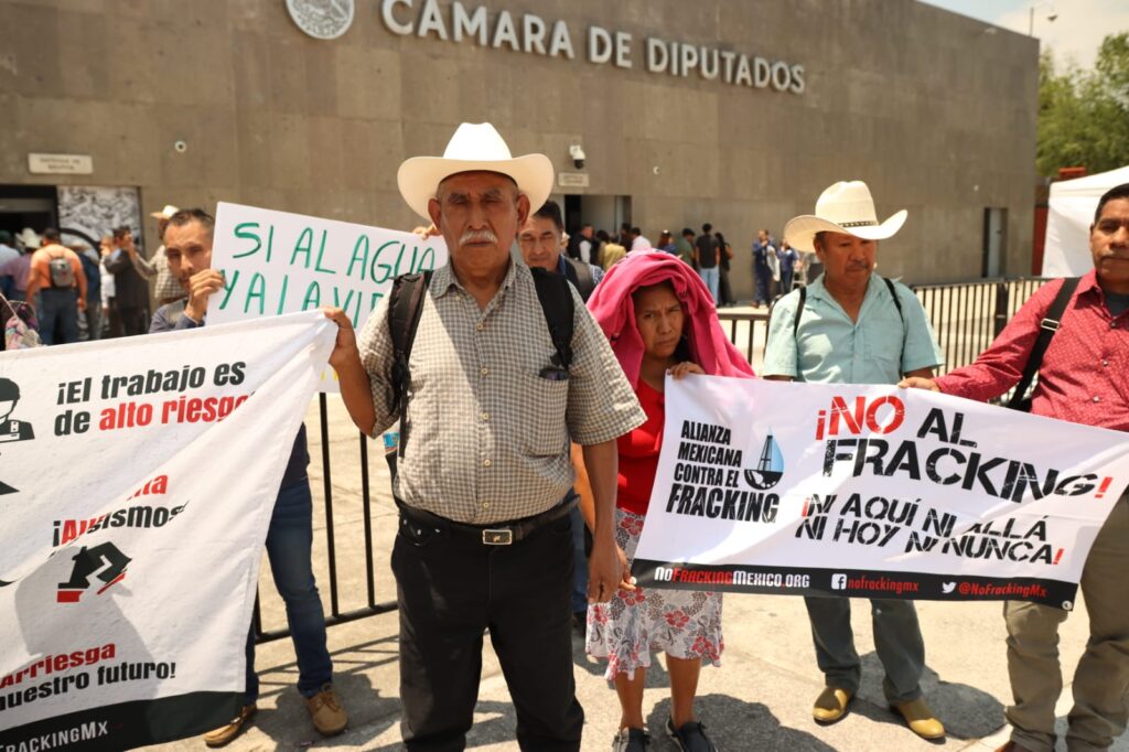El mismo día que Sheinbaum daba a conocer la designación de científicos y expertos, representantes de comunidades indígenas y campesinas de la Huasteca Potosina protestaron y acudieron al Congreso para exigir que se dé trámite a la iniciativa para prohibir el fracking.