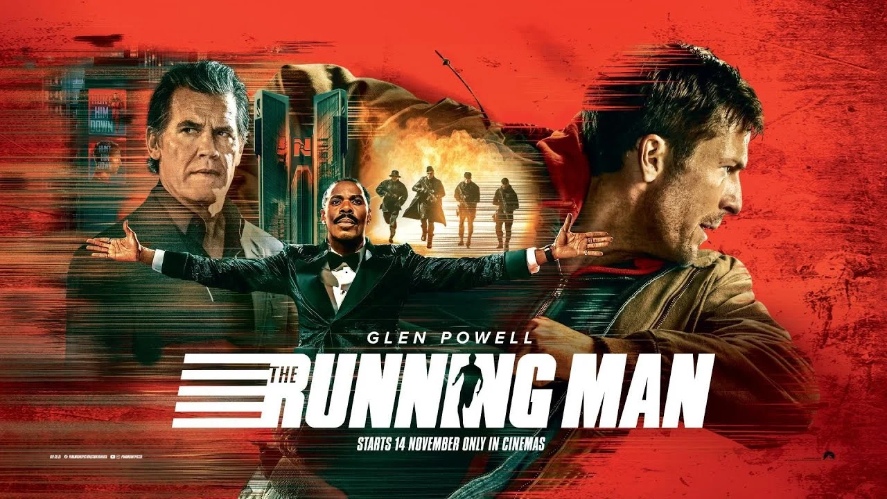“The Running Man” Película de acción intrigante estrenada en 2025, del nicho de thriller distópico, basada en la novela homónima de 1982 escrita por Richard Bachman, adaptada por Michael Bacall y Edgar Wright, quien también es el director.