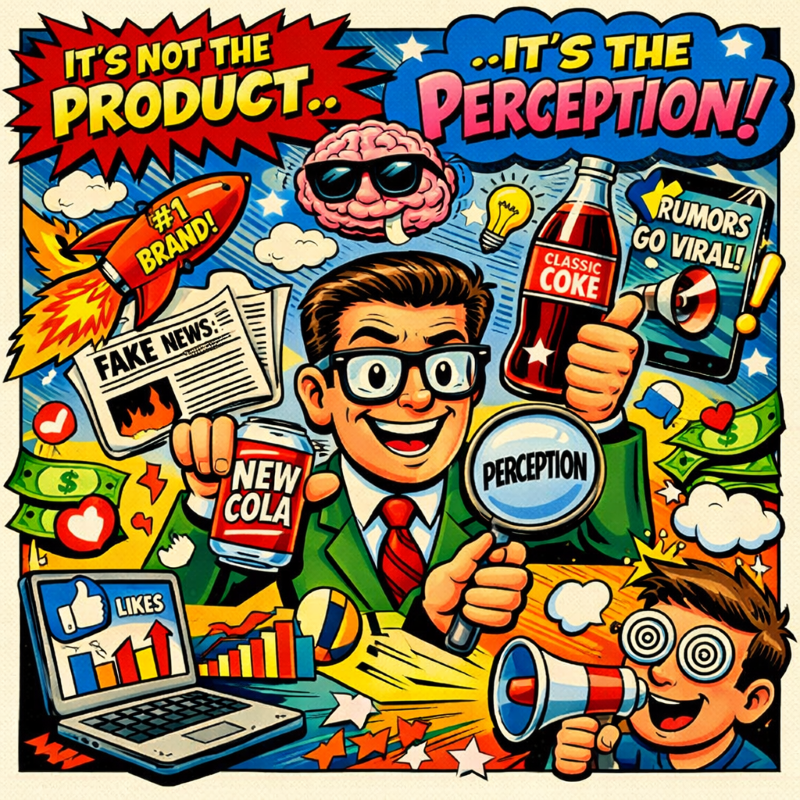 En 1985, Coca-Cola hizo millones de pruebas con consumidores para crear un mejor producto, con mejor sabor, que lanzó bajo el nombre de New Coke. El producto fracasó y Coca-Cola tuvo que relanzar su fórmula original como Coca-Cola Classic. Fue así como la industria refresquera entendió que las personas no toman agua con gas y azúcar sólo por sus características sensoriales, la gente bebe una historia, una costumbre, una identidad.