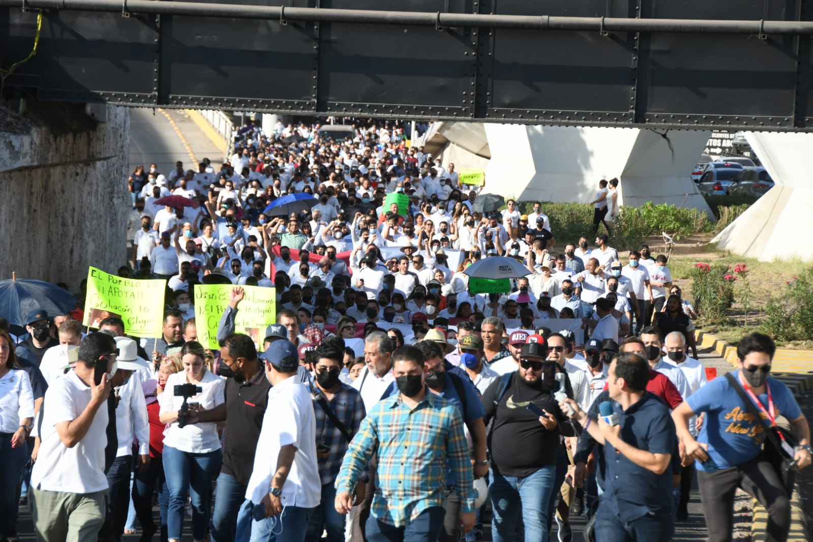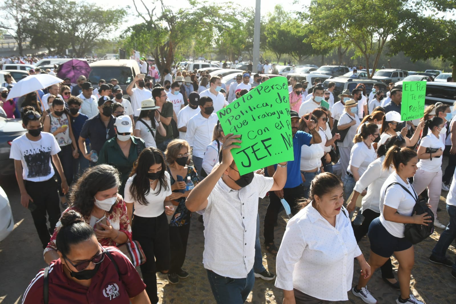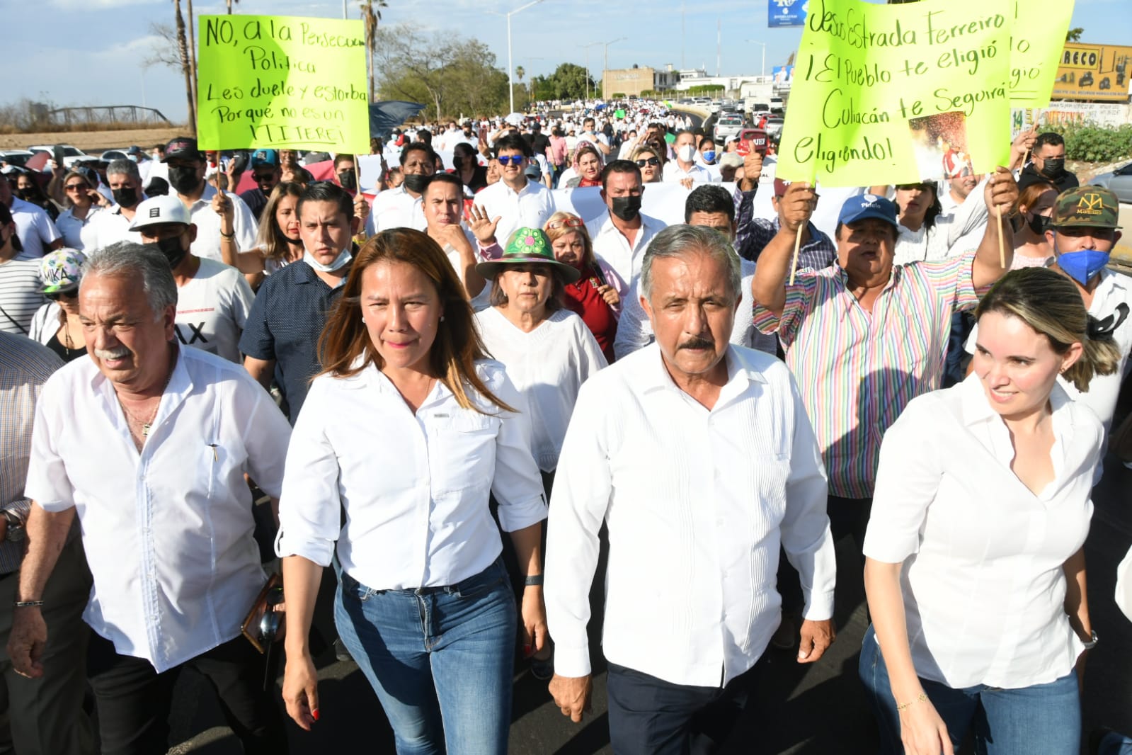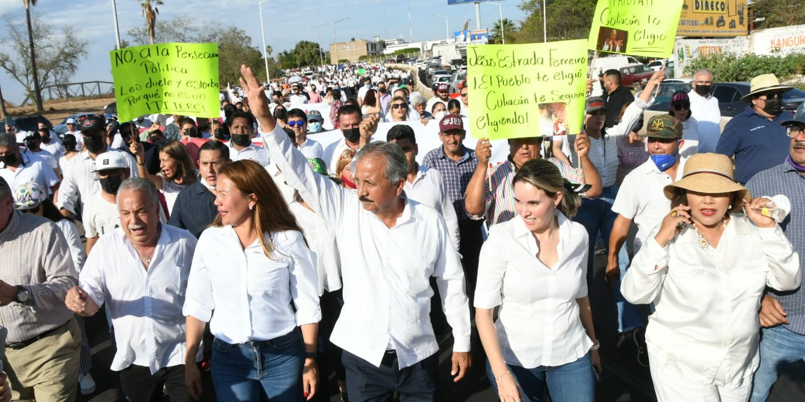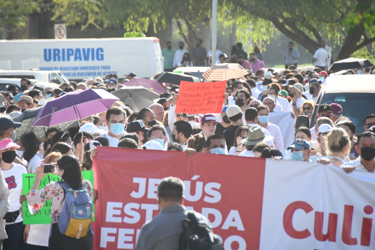 Funcionarios, ciudadanos y universitarios se reunieron esta tarde en el Parque Acuático de Culiacán desde donde marcharon al Congreso del Estado en apoyo al alcalde de Culiacán Jesús Estrada Ferreiro, quien enfrenta una demanda de juicio político en su contra.