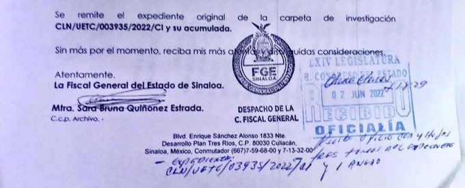 “Se han iniciado carpetas de investigación por hechos probables de corrupción de manejo de recursos del Ayuntamiento del municipio de Culiacán“, dijo Nereyda Avilés Aceves, Fiscal anticorrupción de Sinaloa el 24 de mayo.