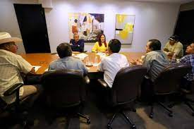 El mandatario estatal, acompañado por la secretaria de Pesca y Acuacultura Flor Emilia Guerra Mena, mantuvo una reunión con los representantes de las distintas cooperativas pesqueras de Sinaloa en donde se le solicitó ayuda para mejorar la actividad pesquera en el sector ribereño y fortalecer los programas que permitan brindar mejores condiciones para quienes ejercen la pesca.
