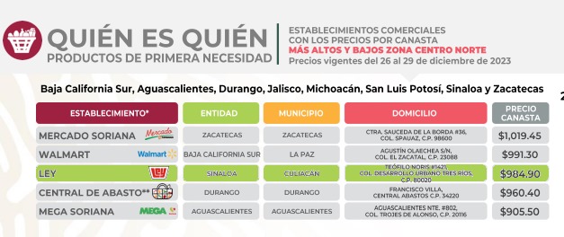 Sinaloa.- En el comienzo del año 2024, las familias en Sinaloa se ven afectadas por un significativo aumento del 22 por ciento en el costo de la canasta básica alimentaria, según datos recopilados por Espejo Negocios. Este análisis se basa en información obtenida hasta el 08 de enero de 2024 de un establecimiento de referencia utilizado por la PROFECO para elaborar el informe semanal “Quién es Quién en los Precios de Productos de Primera Necesidad”.
