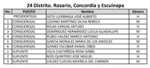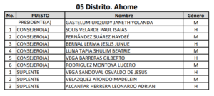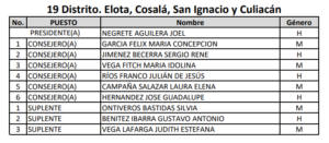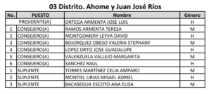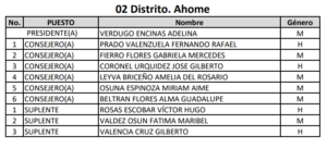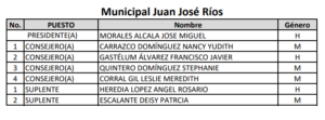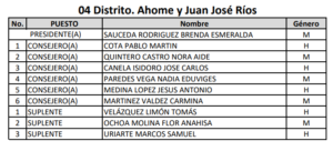 A continuación las listas de los integrantes de los 24 Consejos Distritales y los 14 Consejos Municipales: