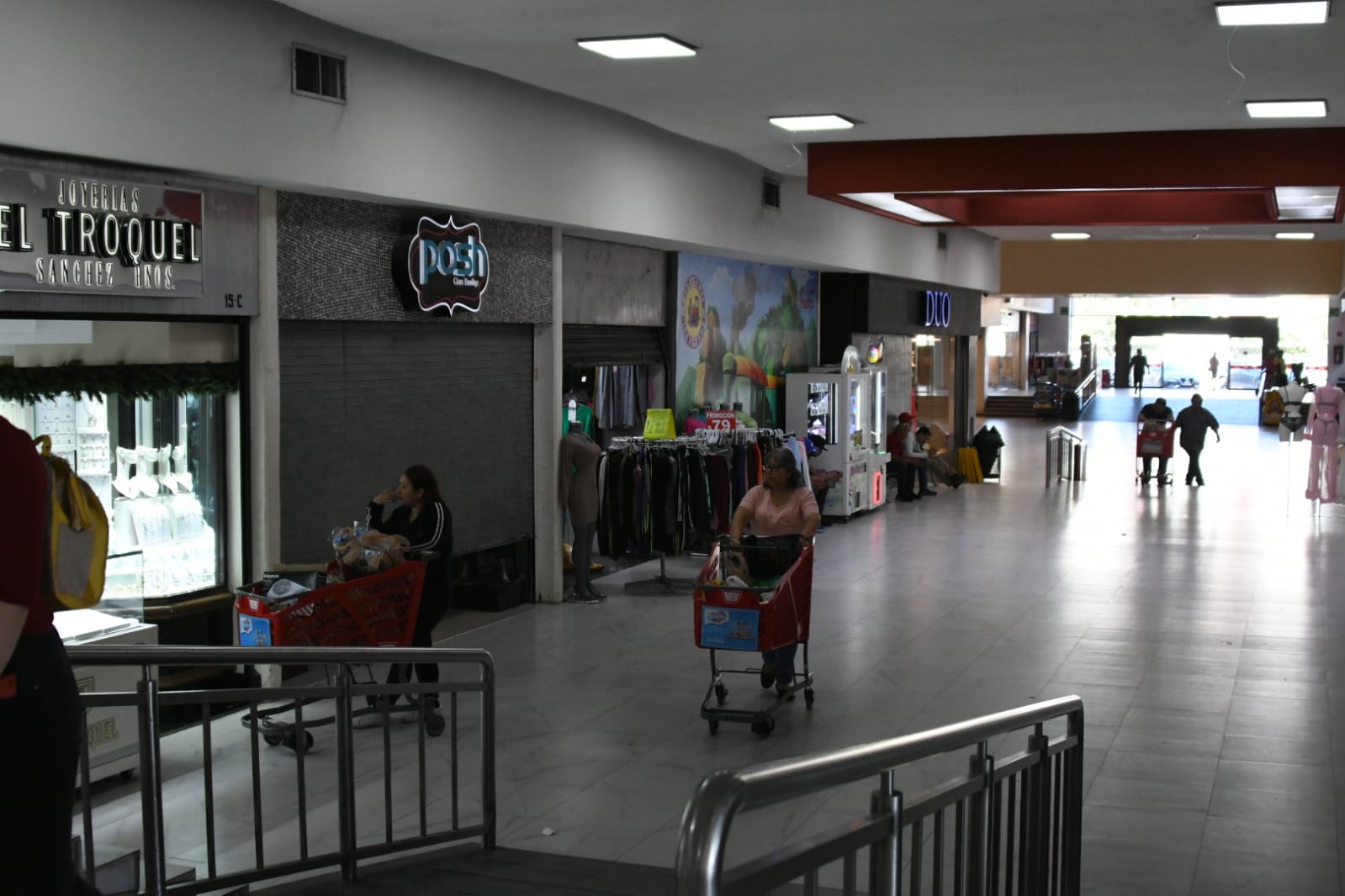 El ala norte se encuentra prácticamente vacía, con espacios comerciales en renta que pintan un cuadro desolador, mientras que en el centro de la plaza los transeúntes, en su mayoría adultos mayores, se aventuran a realizar sus compras en la todavía activa Casa Ley, así como en la sección sur donde se ubica la tienda Coppel, recientemente remodelada.