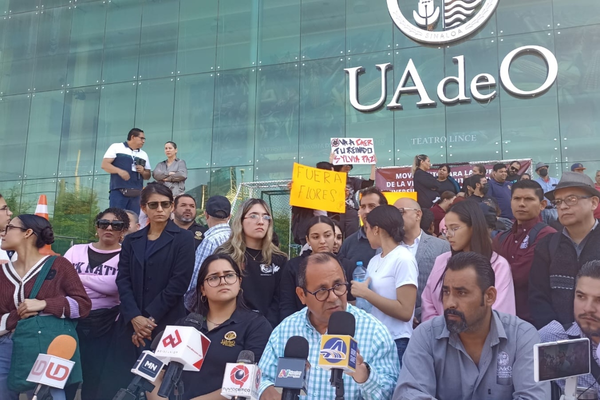 Culiacán.- Trabajadores y estudiantes de la Universidad Autónoma de Occidente (UAdeO), liberaron los accesos a las oficinas de Rectoría Culiacán y Los Mochis, así como el Teatro Lince, las cuales mantenían cerradas con candados y cadenas en protesta por el nombramiento de Pedro Flores como el nuevo rector.