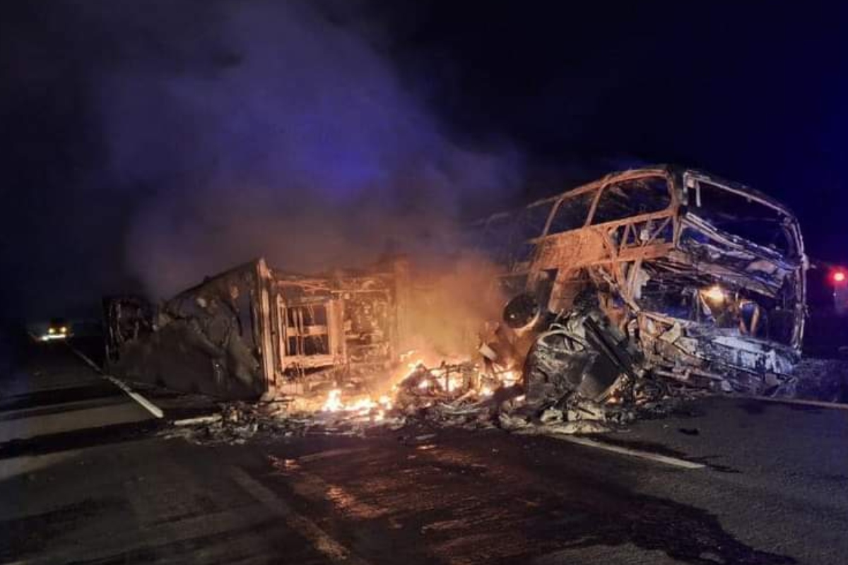 Detalló que el encontronazo ocurrió a la altura de Boscoso y Tanques, en el kilómetro 104 de la autopista, en Elota, sobre el carril de sur a norte, pero fue necesario el cierre de la circulación en ambos sentidos, pues las dos unidades se incendiaron.