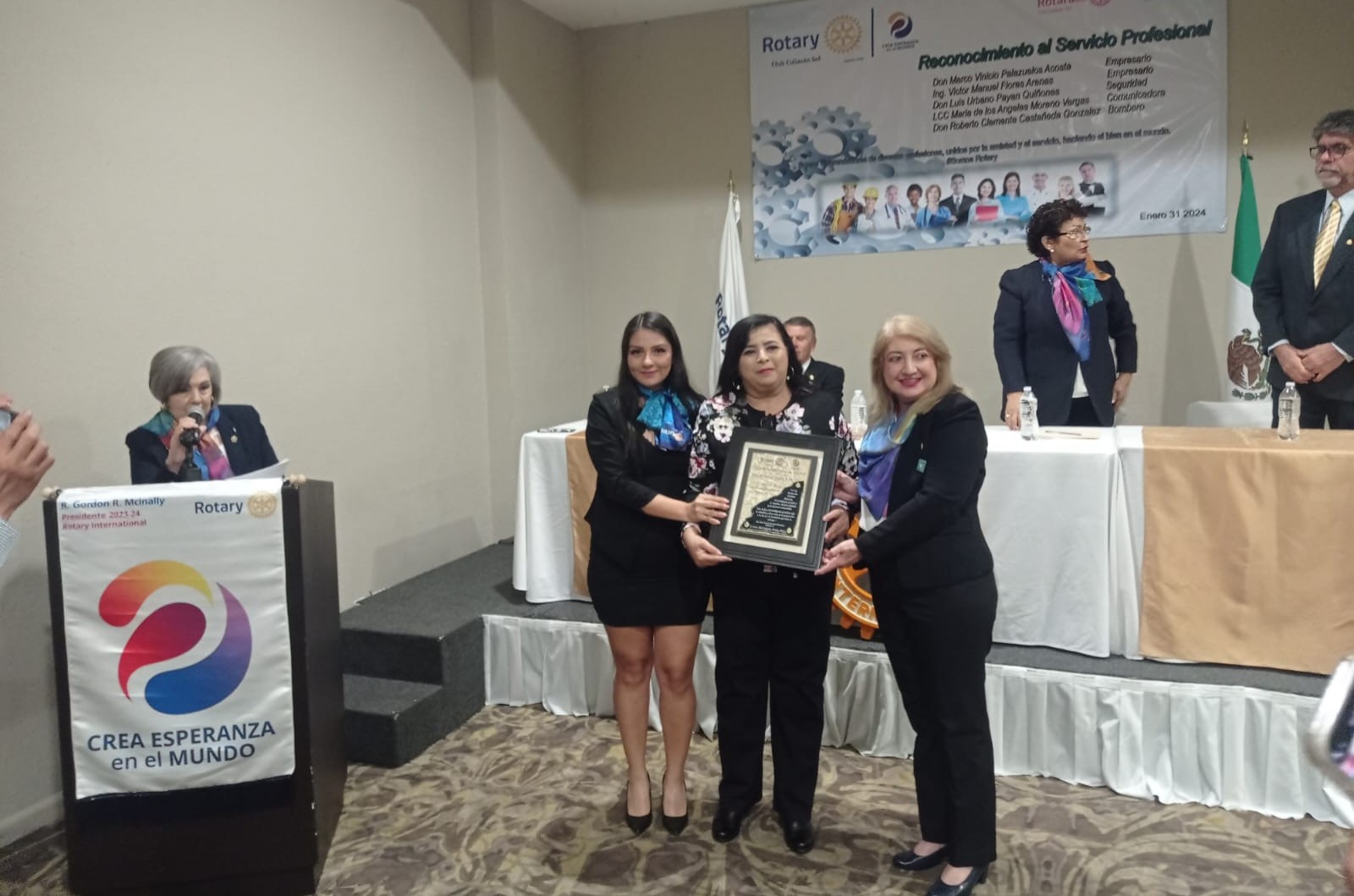 Culiacán, Sin.- El Club Rotario Culiacán Sol entregó un reconocimiento al servicio profesional a la periodista María de los Ángeles Moreno Vargas por sus más de treinta años de experiencia comunicando.