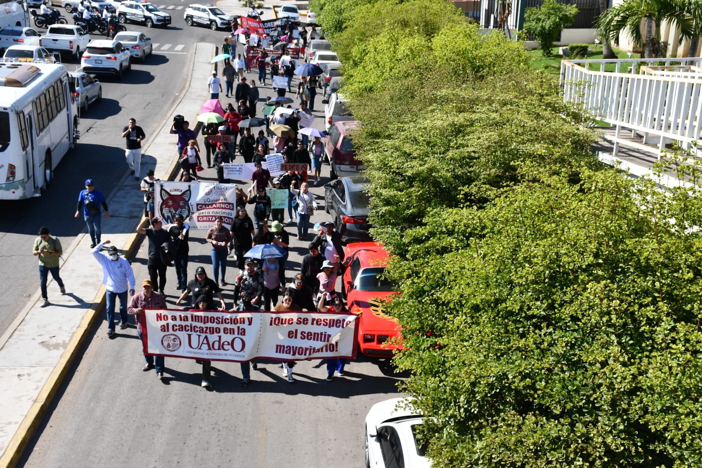 Culiacán, Sinaloa.- Un nuevo capítulo en la lucha por reformar la Ley Orgánica de la Universidad Autónoma de Occidente (UAdeO), así como la reposición del proceso de elección de rector, protagonizaron este jueves miembros de la comunidad universitaria, al marchar desde dicha universidad hacia el Congreso de Sinaloa.