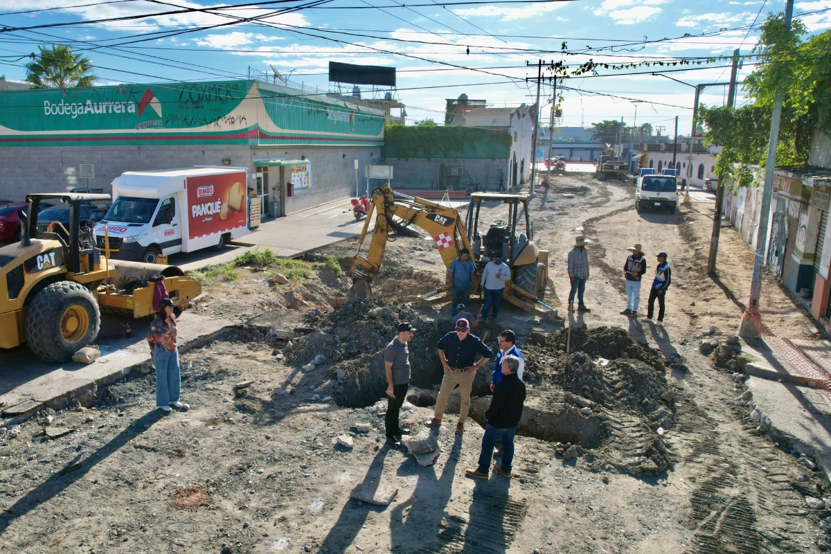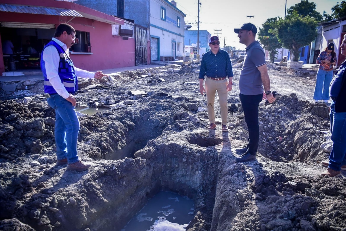 Mazatlán, Sinaloa.- A poco menos de dos semanas de iniciada la obra de rehabilitación de la avenida Insurgentes, el alcalde Édgar González realizó un recorrido de supervisión en el lugar para verificar los avances de los trabajos que están en la etapa de sustitución de tuberías de drenaje.