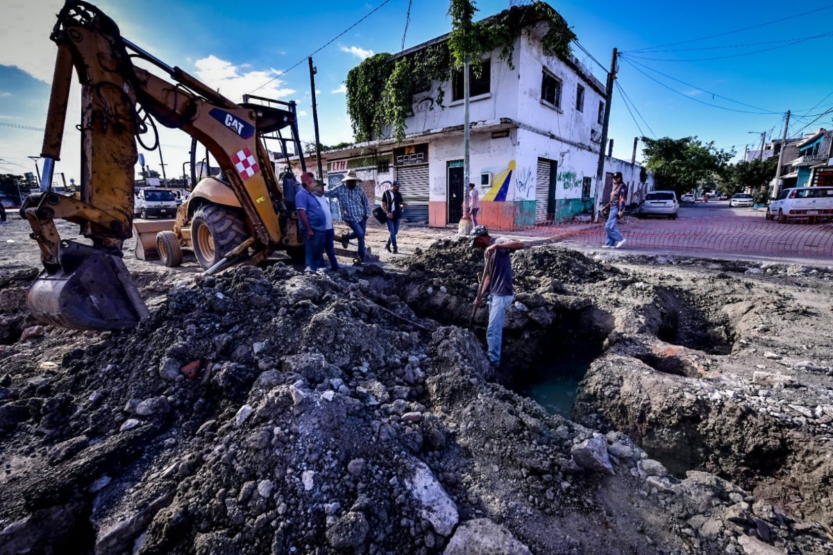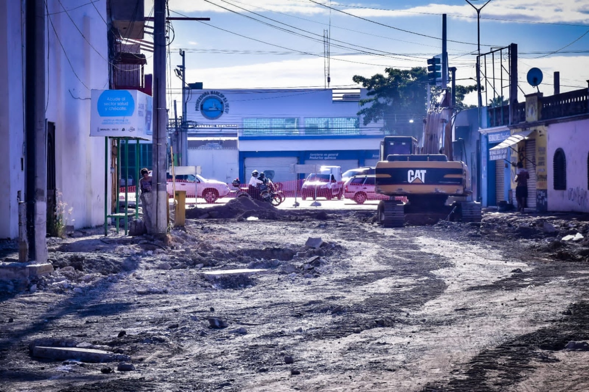 El Primer Edil explicó que la obra tiene un alto grado de dificultad por las condiciones de humedad en la zona a falta de una base adecuada en la antigua construcción de la vialidad, por lo que en esta ocasión se hará una base adecuada y se ampliarán los diámetros de las tuberías, lo que dará mayor durabilidad a la obra que se está realizando por etapas para evitar en lo posible el colapso de la actividad comercial.