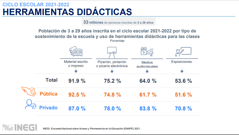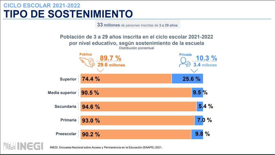 Según el Foro Económico Mundial (WEF), la desigualdad educativa en México superó el promedio de la región latinoamericana y mundial en 2023, generando diferencias en acceso, recursos didácticos, infraestructura y calidad educativa. El impacto se refleja en la preferencia de 3.4 millones de mexicanos, según el INEGI, por la educación privada.