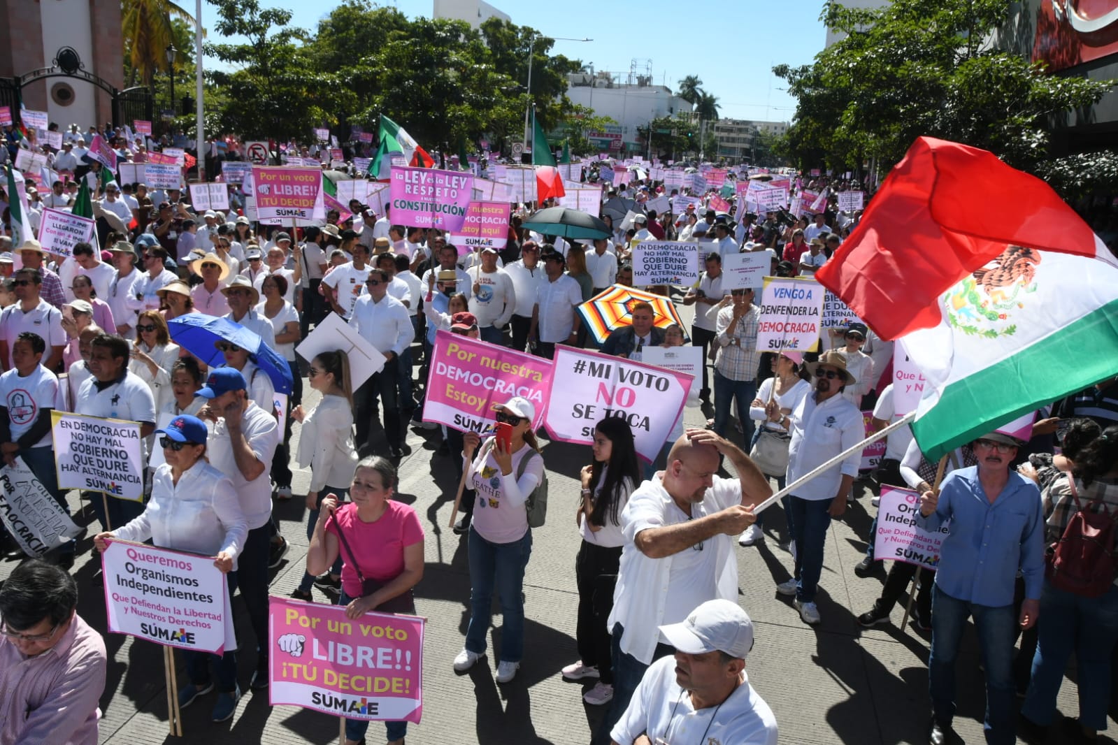 Culiacán, Sin.- La organización civil SUMATE logró convocar a unos miles (los organizadores afirmaron que 10 mil) de ciudadanos en la denominada “Marcha por nuestra democracia” este domingo en Culiacán, la cual recorrió de La Lomita hasta catedral, replicándose en Mazatlán y Los Mochis.