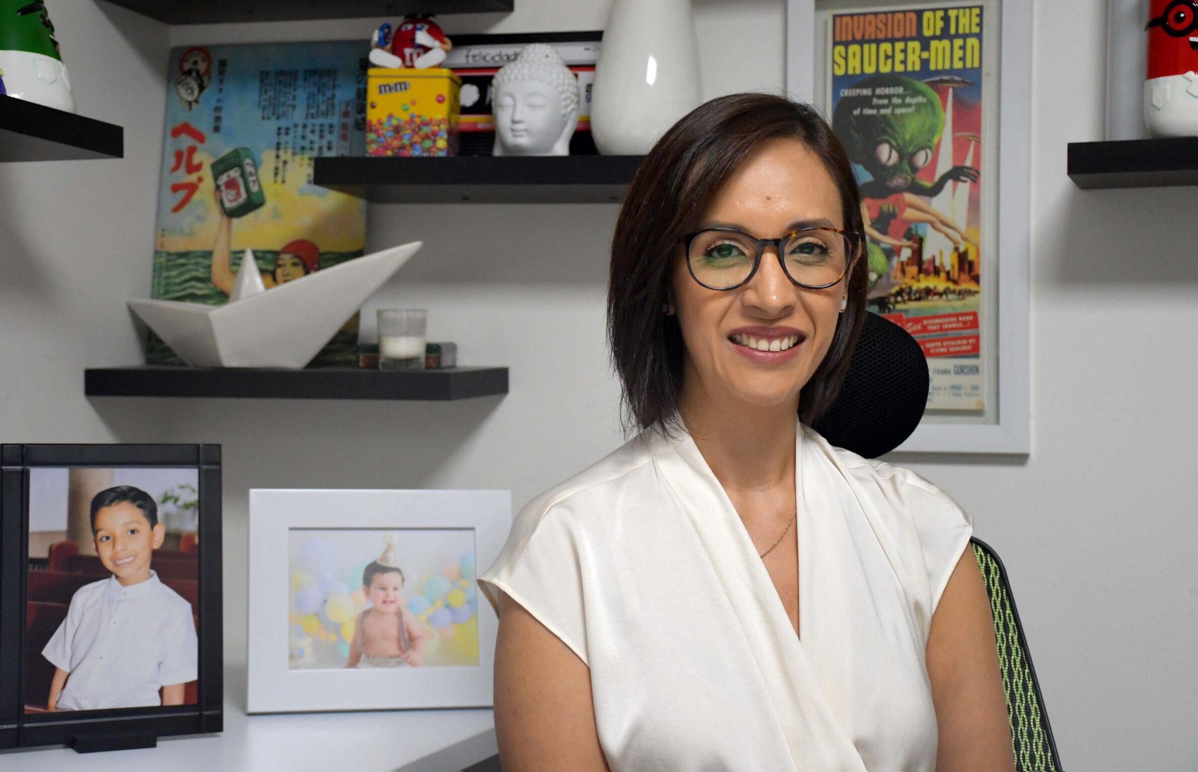 “Oye, Esteban está enfermo, yo voy a estar conectada, pero voy a ir al pediatra, y agarro mi bolsa y me voy y no va a pasar absolutamente nada, porque mis ojos están en la enfermedad de mi hijo. Ah, pero yo regreso y soy Diana la doctora, la profesional, la que tiene que hacer la tarea. Al final cada quien encuentra su dosis, pero la mía está en eso, allá en la casa soy la mamá, la esposa, la señora, y la mujer. Y aquí soy la profesional y en ese papel estoy, porque querer equilibrar eso no es posible. El tema está en estar donde tienes que estar, en cuerpo y alma”.