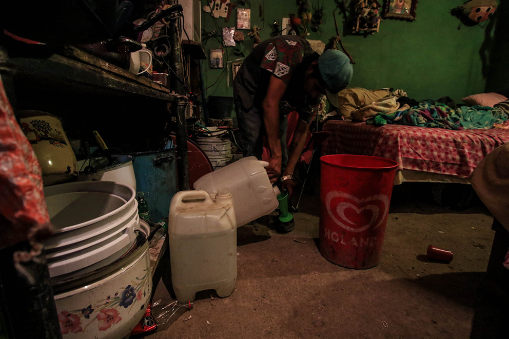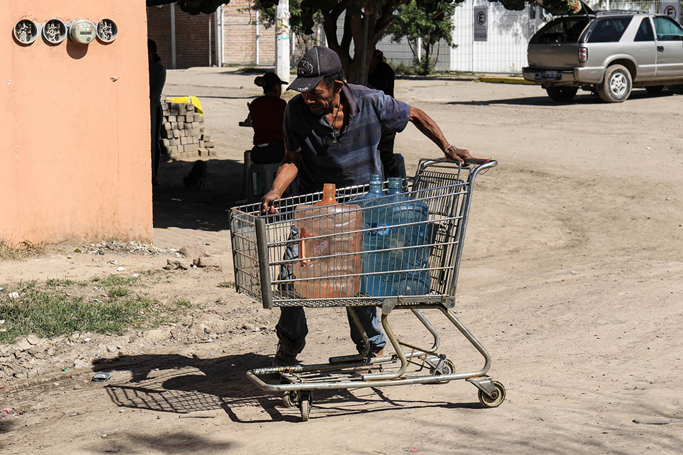 Martha Rodríguez ha vivido en esta comunidad desde 2003, explica que para tener acceso al agua se abastecen con garrafones que sus hijos y sobrinos, de entre 10 y 14 años, llevan sobre sus hombros desde la toma de agua más cercana a 300 metros.