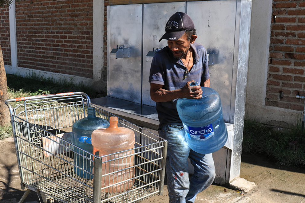 - En San Juan de Abajo, un hombre llena garrafones en una toma comunitaria. Fotos: Juan José L. Plascencia