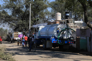 Habitantes de San Juan de Abajo esperan la llegada de la pipa para reabastecer sus contenedores y tener agua para su familia. Fotos: Juan José L. Plascencia