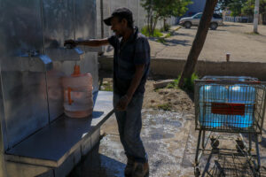En San Juan de Abajo, un hombre llena garrafones en una toma comunitaria. Fotos: Juan José L. Plascencia