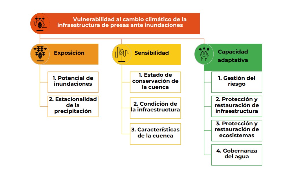 Cabe destacar que la metodología utilizada toma en cuenta los componentes de la vulnerabilidad bajo el enfoque del Grupo Intergubernamental de Expertos sobre el Cambio Climático (IPCC) los cuales son: Exposición, Sensibilidad y Capacidad Adaptativa.