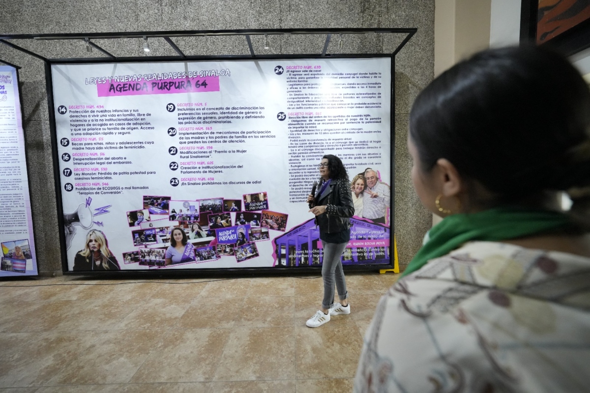 Culiacán, Sinaloa.- Diputadas del Congreso del Estado inauguraron la noche de este miércoles la exposición gráfica “Leyes y Nuevas Realidades de Sinaloa. Agenda Púrpura ’64”, que es una recopilación de los avances legislativos logrados en los últimos tres años a favor de las mujeres y grupos sociales vulnerables.
