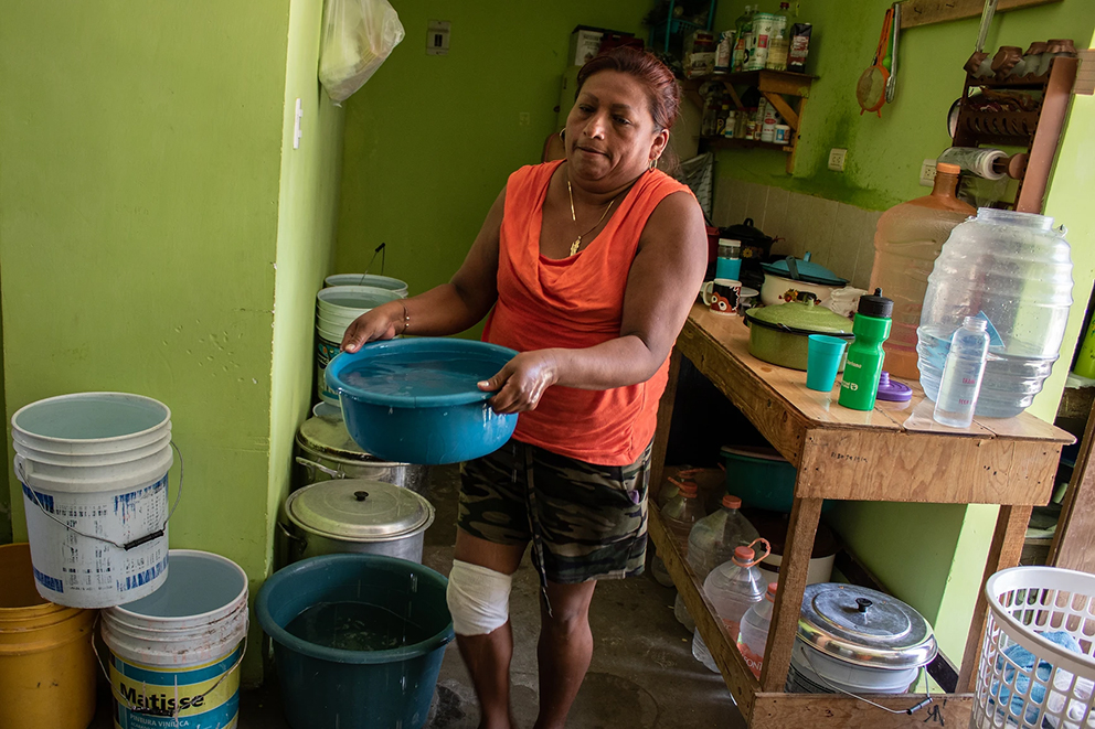 Al matrimonio le llegaba agua intermitente de los tandeos desde hacía diez días y se había tenido que bañar con baldes en varias ocasiones. Otros vecinos habían ocupado agua de sus albercas para limpiar el piso.