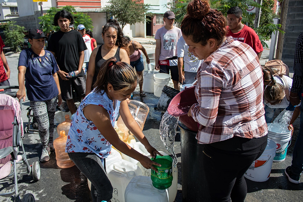 Cuando María Matús abandonó los Valles de Oaxaca hace 30 años y se trasladó a Nuevo León, nunca imaginó que también en el estado más próspero de México algún día faltaría agua. El nombre de su comunidad prefiere omitirlo, porque, además de la sequía, le persiguen las extorsiones de quienes piensan que por vivir en el norte (de México), es rica. Pero, las cuentas tampoco cuadran de empleada doméstica. Y ahora ni eso. La mujer de 42 años tuvo que dejar de ir a las casas que limpiaba para recoger algo de agua de las pipas que distribuyen cada tres o cuatro días, sin orden ni aviso.