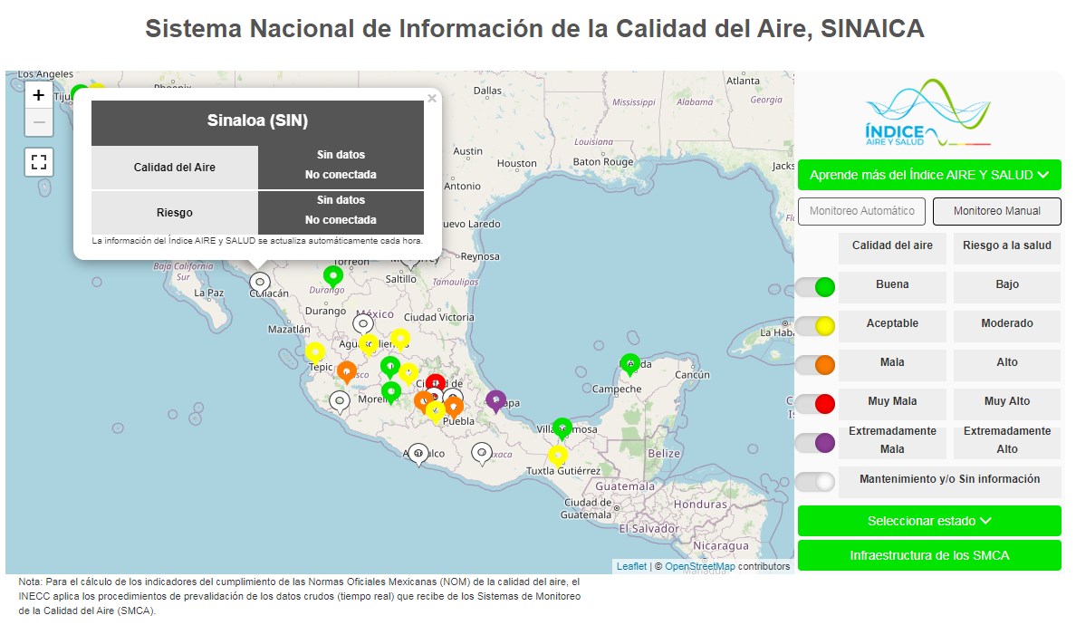 Actualmente Sinaloa tiene cuatro estaciones de medición de la calidad del aire en las ciudades de Los Mochis, Guasave, Culiacán y Mazatlán. Pero ninguna está funcionando.