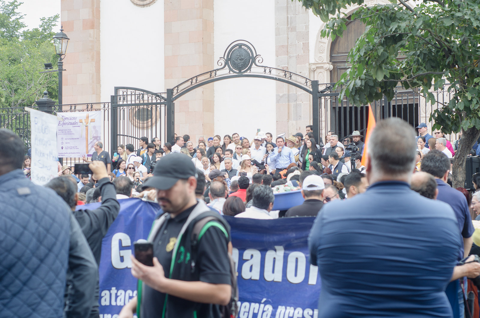 “Aquí en la Obregón, en la acera de catedral, hay un enorme contingente que está acompañando al doctor Robespierre en lo que hoy será un día importante para buscar las vías de solución”, comentó.