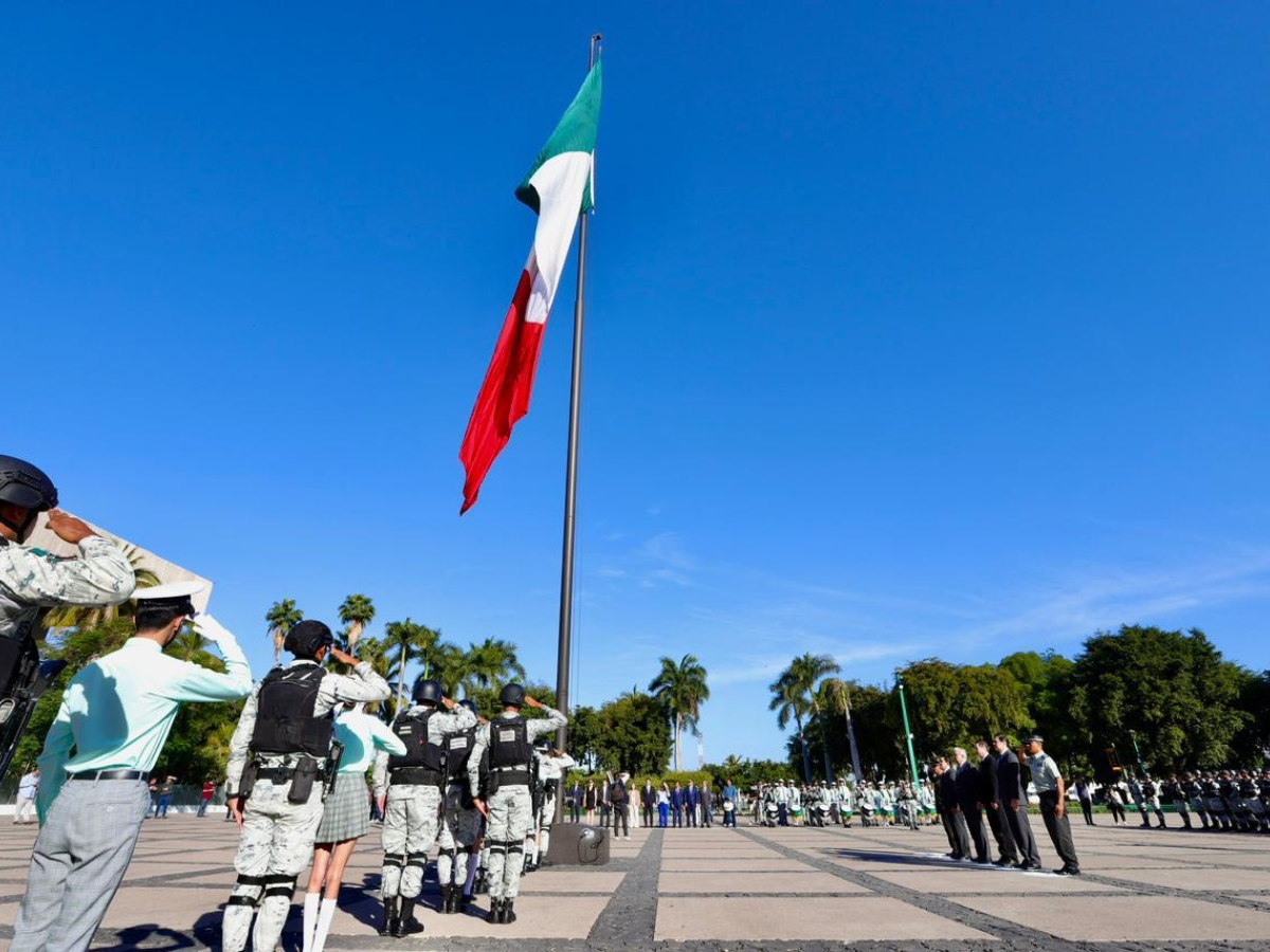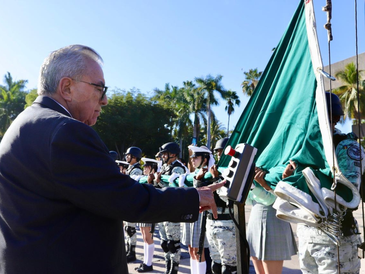 La ceremonia tuvo lugar en la explanada de Palacio de Gobierno, donde el gobernador Rocha primeramente izó la bandera nacional a toda asta y enseguida montó guardia de honor ante el monumento al general Lázaro Cárdenas, en compañía de los representantes de los demás Poderes del Estado, del Ayuntamiento de Culiacán y representantes militares.