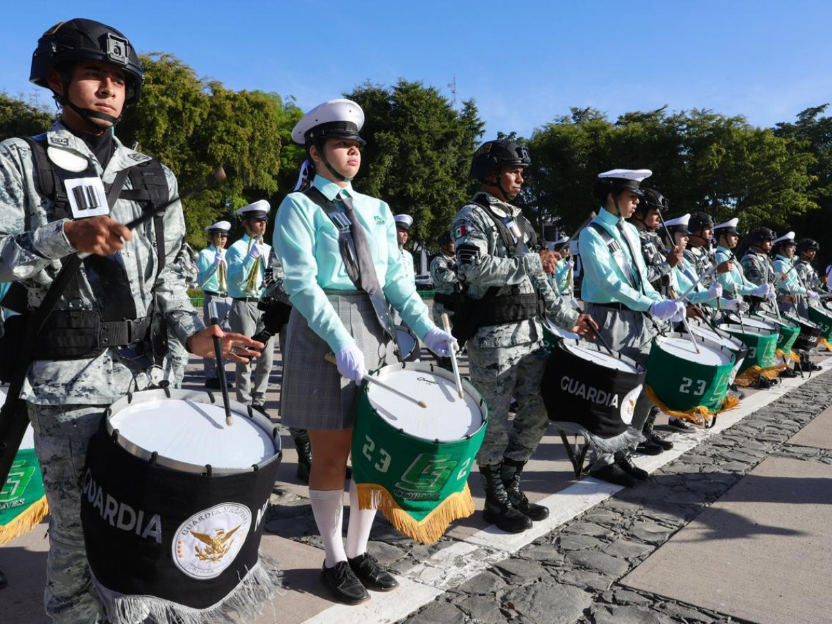 Para concluir la ceremonia, las Bandas de Guerra del Cobaes y de la Guardia Nacional, tocaron de manera simultánea el Toque de Tres de Diana, para recordar esta fecha histórica nacional.