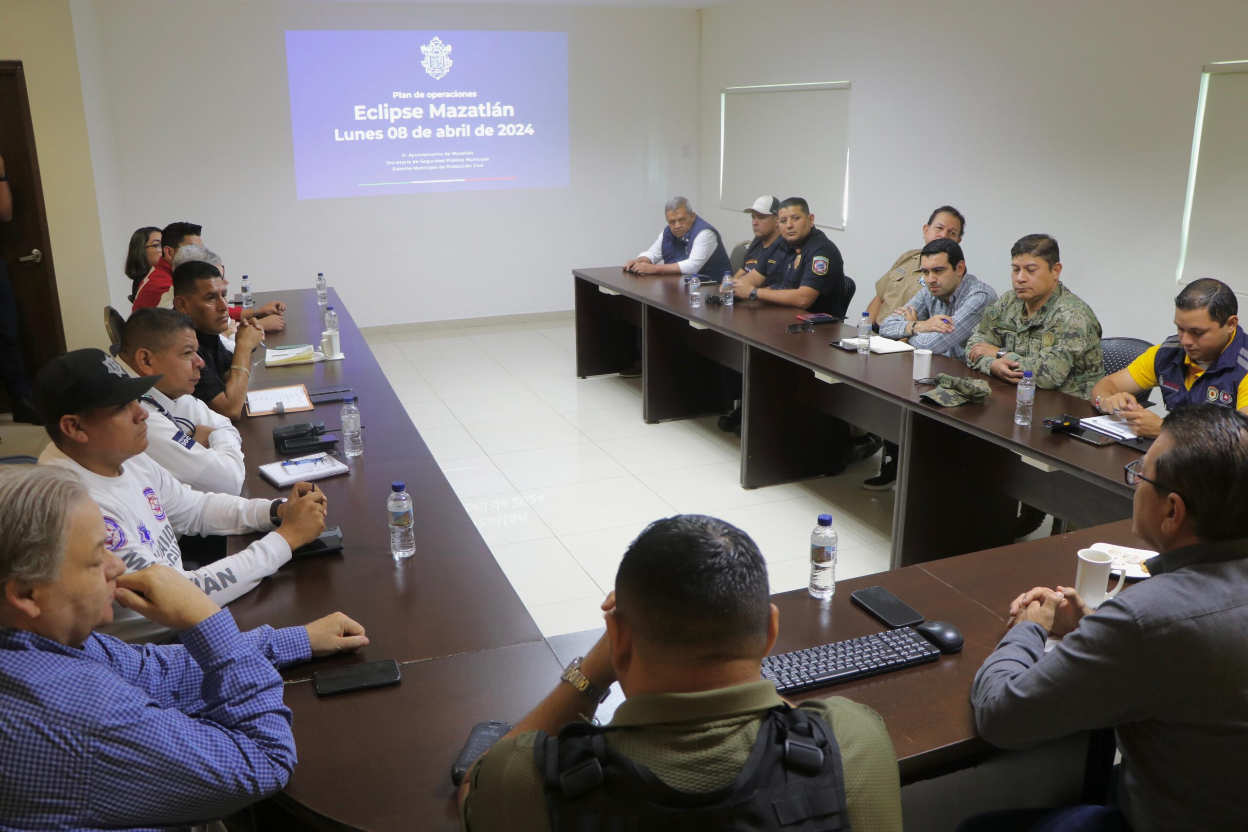 Mazatlán, Sinaloa.- Esta mañana, el Alcalde de Mazatlán, Édgar González, se reunió con autoridades clave involucradas en el operativo de seguridad que se implementará durante el Eclipse Total de Sol que se presenciará este lunes en la ciudad para coordinar estrategias de seguridad para habitantes locales y turistas que acudirán al evento.
